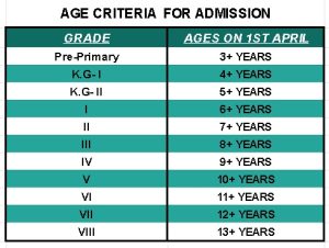 Ans. For Pre-primary the age limit is less than 4 years as of 31st March. For KG-I the age limit is less than 5 years as of 31st March. For KG-II the age limit is less than 6 years as of 31st March. For Class-I the age limit is less than 7 years as of 31st March.